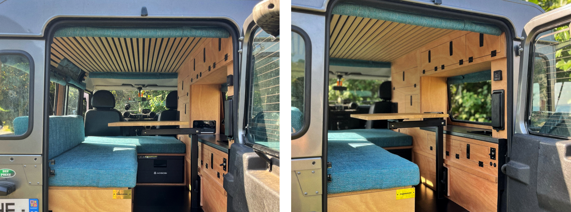 Voici Fynn, un Defender 110 entièrement préparé et aménagé pour une cliente, son chien et son chat. Cet aménagement offre un espace de vie chaleureux, fonctionnel et optimisé dans les moindres détails : coin cuisine, banquette, espace de travail, chauffage, chauffe-eau et installation électrique complète et coin litière pour le chat. Une réalisation sur-mesure. Notre objectif était de permettre à notre cliente de voyager en toute sérénité à travers l’Europe !